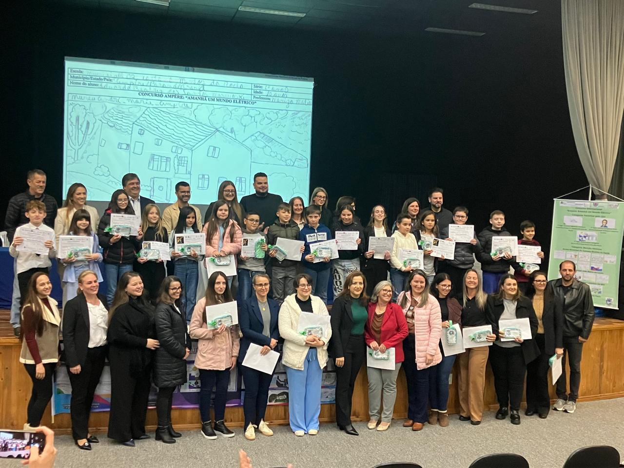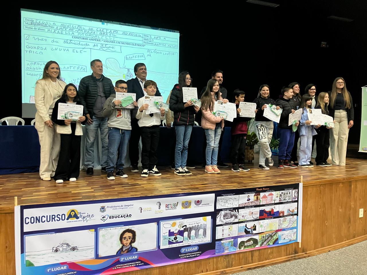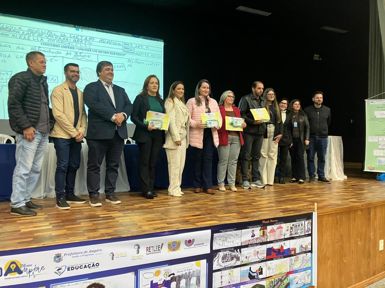 À Ampére, l’initiative a été portée par un partenariat entre l’Université de Lyon (France), l’UNIOESTE – campus de Francisco Beltrão, le groupe de recherche RETLEE et la municipalité. Pas moins de 301 élèves des quatre écoles municipales ont participé, réalisant des dessins inspirés de l’histoire électrique locale (dont la première et unique centrale hydroélectrique municipale, en activité de 1969 à 1976), de la vision d’un futur électrique et des pas d’André-Marie Ampère.